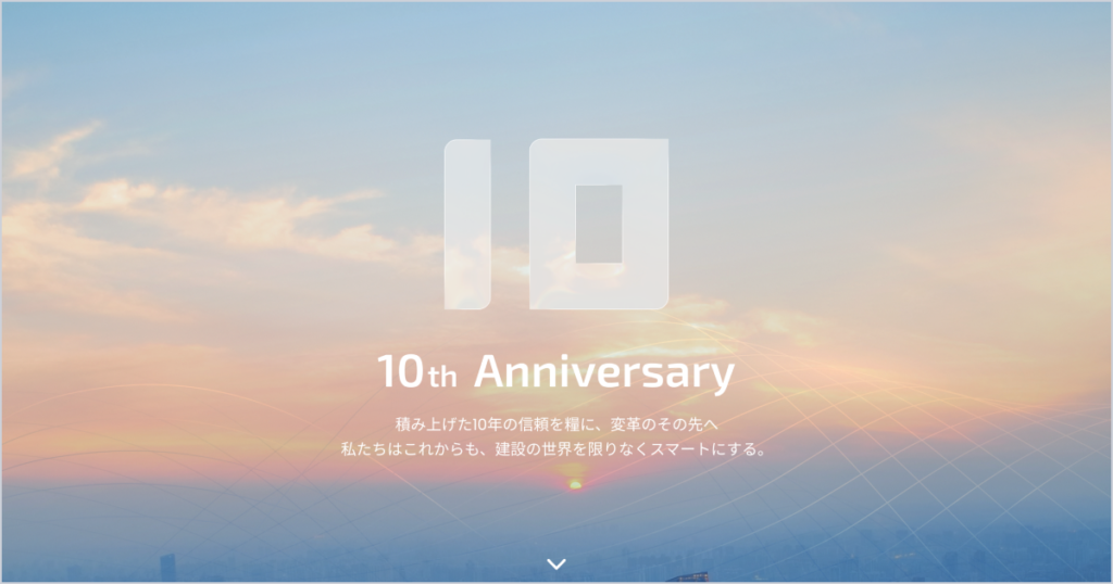 「建設の世界を限りなくスマートにする」をミッションに、 私たちは10年間、建設の世界に向き合いデジタルによる変革の一歩を共に歩んできました。 これまでの歩みに心からの感謝を込めて。 そして、次の10年も、その先の未来も、 私たちは技術の力で、この世界の「働く」を支え続けます。