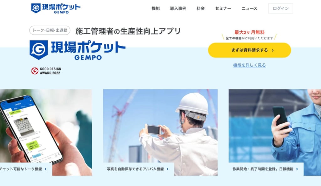 現場ポケットはシンプルで使いやすい施工管理アプリで、35,000人以上の登録ユーザーを持つ建設業界で定評のあるサービスです。